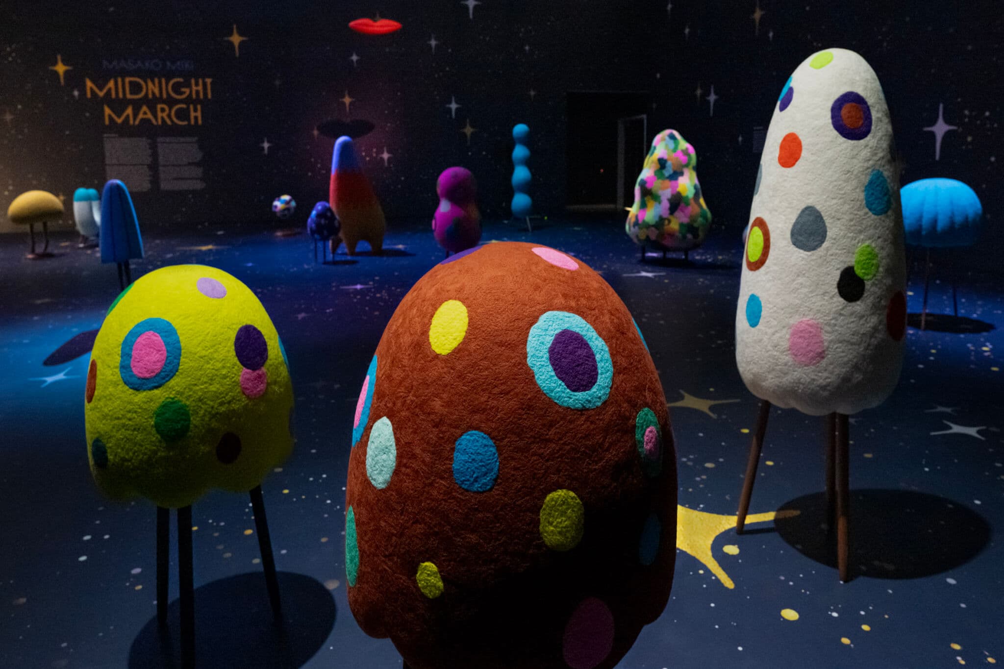 In “Midnight March,” Miki’s mythic shapeshifters trade grotesquerie for softness—settling playfully into a digital spectacle, even as the exhibition frames them as unruly spirits.