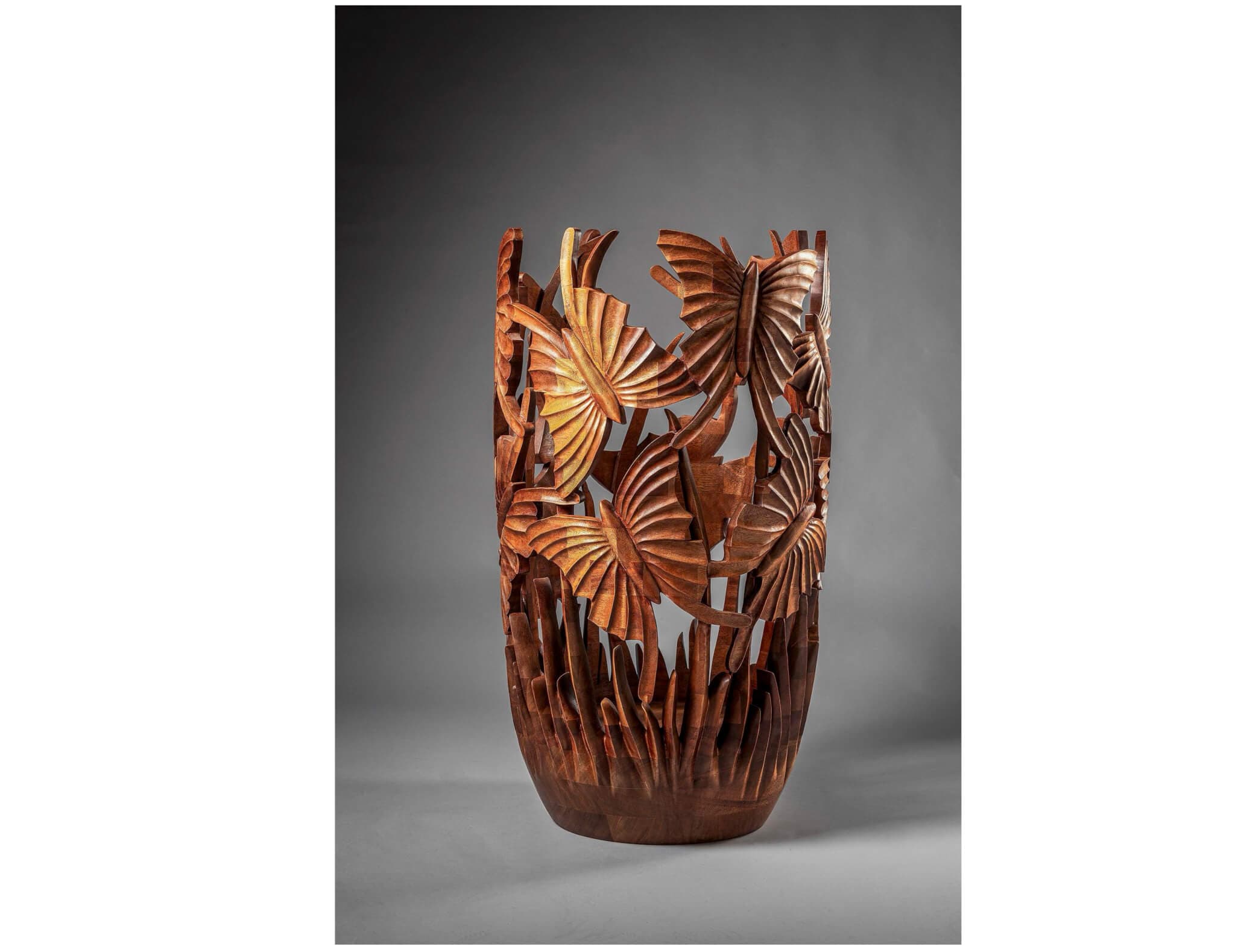 Charles J., Butterfly Vase, 2023. Mahogany, 20 x 26 inches. Courtesy of the artist.